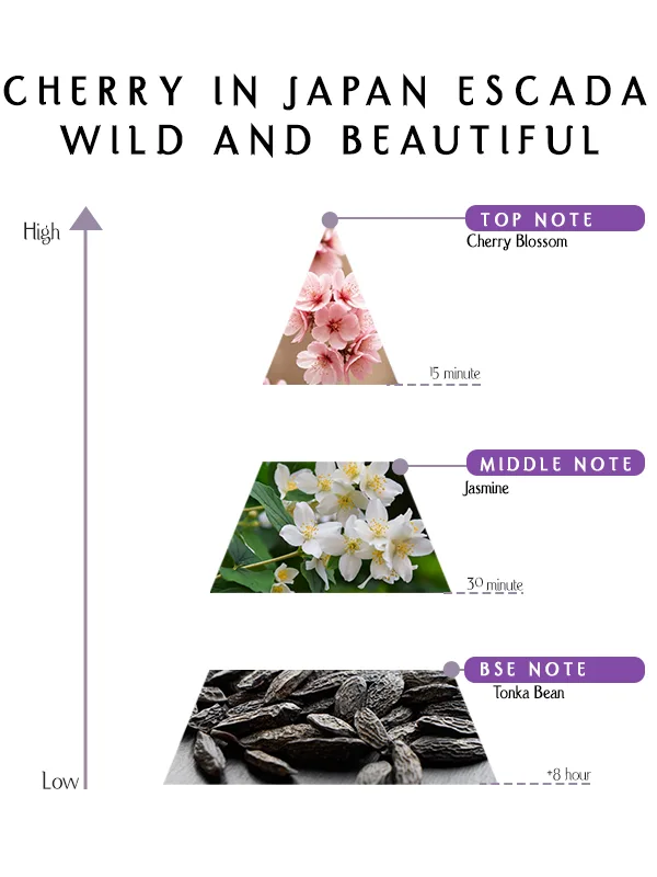 Cherry In Japan Escada Wild And Beautiful Perfume is more than a fragrance—it is an expression of wild elegance, floral brightness, and refined sophistication. It transforms cherry blossom delicacy, jasmine opulence, and warm woody depth into a cohesive and unforgettable signature. Each stage of its development feels deliberate, ensuring that the wearer experiences a complete journey from start to finish.
