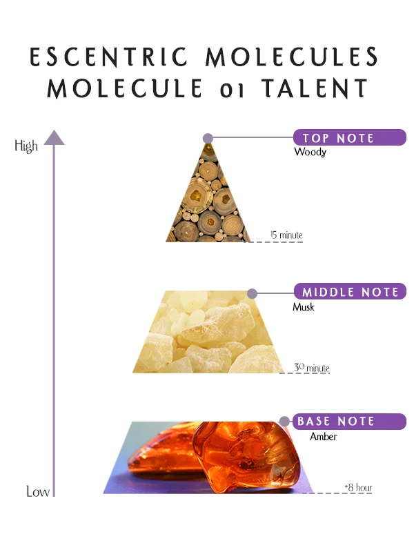Escentric Molecules Molecule Talent Perfume highlights Iso E Super for a bold, elegant minimalist signature.