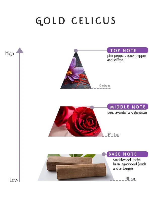 Ultimately, Gold Celicus Perfume 55 ML is more than a blend of notes—it is a narrative of modern sophistication. The spicy opening excites, the floral heart enchants, and the woody base lingers with quiet confidence. Each stage feels intentional, delivering a complete olfactory journey that is memorable, wearable, and distinctly refined. If you want a signature fragrance that speaks elegance without effort, this perfume delivers—day after day, moment after moment.