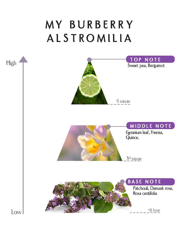 My Burberry Alstromilia Eau de Perfume is more than a fragrance—it is an expression of romance, elegance, and modern femininity. It transforms fresh florals, delicate fruits, and warm earthy notes into a cohesive and unforgettable signature.