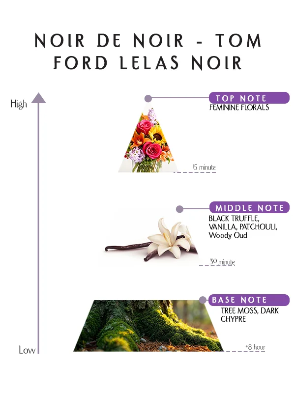Noir De Noir Tom Ford Lelas Noir Perfume is designed for individuals who express confidence through elegance and mystery. On some skin types, florals dominate with brightness; on others, truffle, oud, and chypre emerge with deeper sophistication. This variability makes it a truly unisex fragrance, adapting uniquely to each wearer’s chemistry and personality.