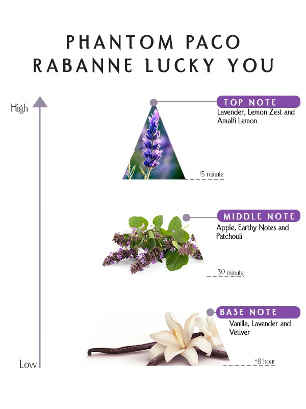 Phantom Paco Rabanne Lucky You Perfume is designed for individuals who express confidence through elegance and vitality. On some skin types, lavender and lemon dominate with citrus brightness; on others, patchouli, vanilla, and vetiver emerge with deeper sophistication. This variability makes it a truly unisex fragrance, adapting uniquely to each wearer’s chemistry and personality.