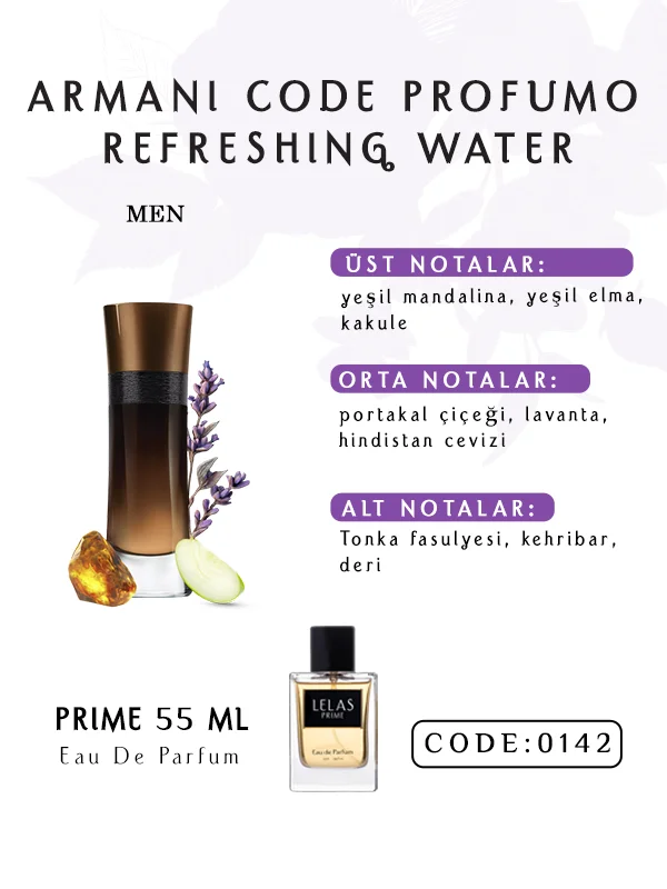 Armani Code Profumo Refreshing Water Perfume 55 ML, sofistike zarafet, ferahlık ve karşı konulmaz cazibenin bir ifadesidir. Perfume File’ın Prime Koleksiyonu’nun parçası olan bu Eau de Parfum; parlak narenciyeler, rafine baharatlar, ışıldayan çiçekler ve derin odunsu tabanı harmanlar. Özgüven, çekicilik ve bireyselliği yansıtarak unutulmaz bir varlık sergileyen erkekler için tasarlanmıştır.