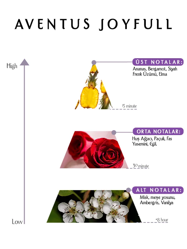 Sonuçta, Aventus Joyfull Eau de Parfum 55 ML sadece notaların birleşimi değil, modern bir sofistike hikâyedir. Meyvemsi açılışı heyecan verir, çiçeksi-odunsu kalp büyüler, miskli-amber taban ise sessiz bir güvenle kalıcı olur. Her aşama bilinçli bir şekilde tasarlanmış olup, unutulmaz ve rafine bir koku yolculuğu sunar. Zahmetsiz zarafeti yansıtan bir imza parfüm arayanlar için mükemmel bir seçimdir.