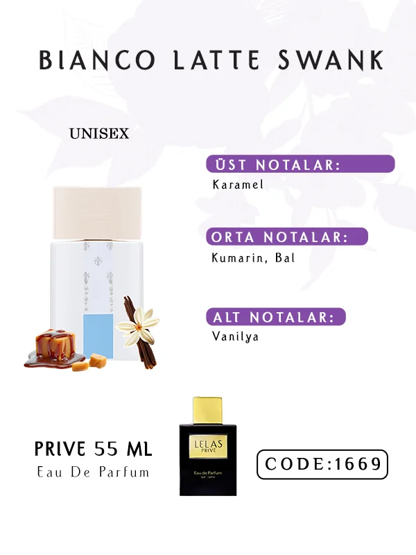 Sonuçta, Bianco Latte Swank Eau de Parfum 55 ML sadece notaların birleşimi değil; konfor, tatlılık ve rafine bir gurme zarafetin ifadesidir. Karamel, bal, kumarin ve vanilya unutulmaz bir gurme imzaya dönüşür. Kalıcı birleşim, sıcak, bağımlılık yaratan ve rahatlatıcı bir iz bırakır.