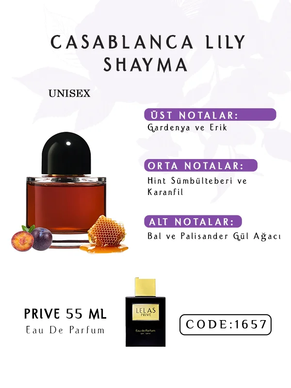 Casablanca Lily Shayma Parfüm, zamansız bir zarafet için gardenya, erik, sümbül, bal ve gül ağacını harmanlayan zarif bir unisex kokudur.