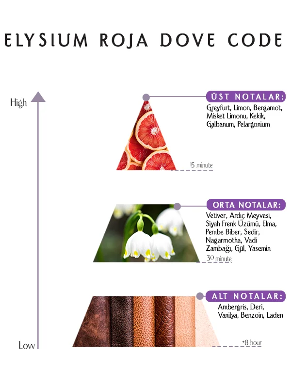 Elysium Roja Dove Code Eau de Parfum, farklı cilt kimyalarına uyum sağlayan kendinden emin ve rafine bir kimlik taşır. Bazılarında narenciye ve bitkisel notalar baskın kalırken, bazılarında deri, amber ve vanilya daha belirgin hale gelir. Günlük kullanım, profesyonel ortamlar ve özel akşamlar için idealdir.