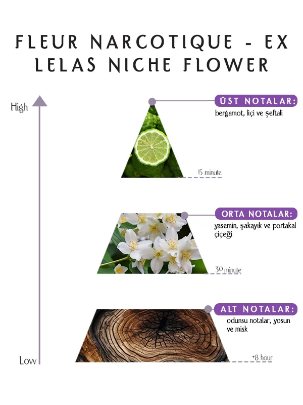 Fleur Narcotique Ex Lelas Niş Çiçek Parfümü, zarafet ve doğal çekicilikle özgüvenini ifade eden bireyler için tasarlanmıştır. Bazı cilt tiplerinde bergamot ve liçi meyvemsi bir parlaklıkla öne çıkarken, bazılarında yasemin, misk ve odunsu notalar daha derin bir sofistikasyon sunar. Bu değişkenlik, kokuyu gerçek anlamda unisex yapar ve her kullanıcının ten kimyasına ve kişiliğine özgü bir karakter kazanmasını sağlar.