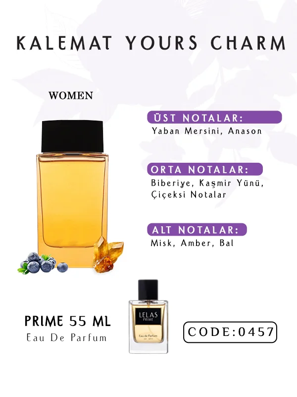 Kalemat Yours Charm Eau de Parfum 55 ML, zarafet, cazibe ve zamansız sofistikeliği benimseyen kadınlar için tasarlanmış rafine bir parfümdür. Perfume File’ın Prime Koleksiyonu’nun parçası olan bu koku; meyvemsi parlaklık, bitkisel incelik ve sıcak duyusallığı harmanlayarak büyüleyici bir yolculuk sunar. Özgüven, cazibe ve karşı konulmaz bir varlık yansıtır; özel anlarda fark yaratmak için idealdir.