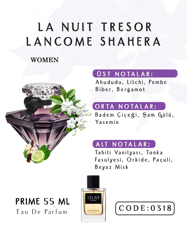 La Nuit Tresor Lancome Shahera Eau de Parfum, tutkunun, romantizmin ve karşı konulmaz feminenliğin büyüleyici bir ifadesidir. Aşkı yoğunluk ve zarafetle benimseyen kadınlar için tasarlanan bu parfüm, arzunun büyüsünü en etkileyici haliyle yakalar. İlk sıkıştan itibaren samimi, lüks ve derin duygusal bir aura yayar.