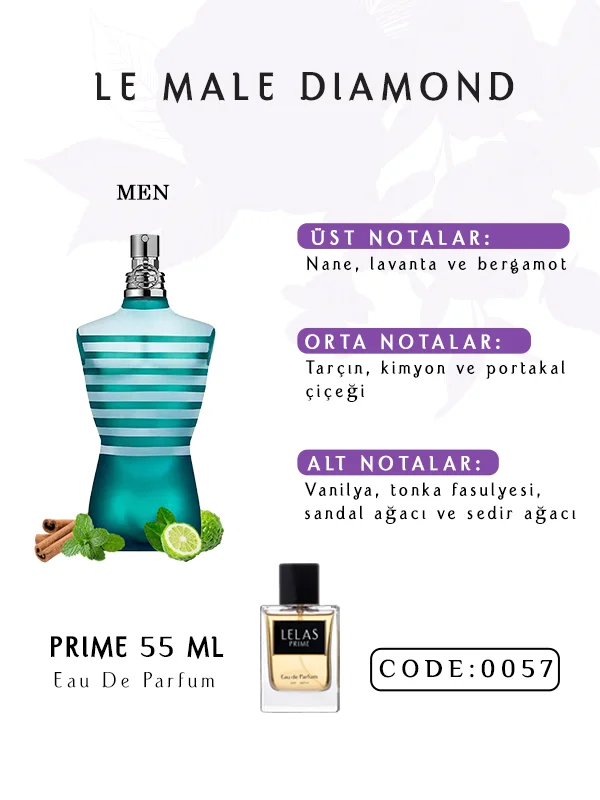 Le Male Diamond Perfume 55 ML, canlılık, sofistike zarafet ve zamansız cazibenin bir ifadesidir. Perfume File’ın Prime Koleksiyonu’nun parçası olan bu Eau de Parfum; aromatik ferahlık, baharatlı incelik, çiçeksi zarafet ve odunsu derinliği harmanlar. Zarafeti ve bireyselliği benimseyenler için tasarlanmış olup, Le Male Diamond Perfume 55 ML cesur bir karizmanın imzasıdır.
