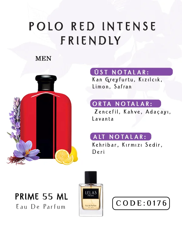 Polo Red Intense Friendly Eau de Parfum 55 ML, cesaret, sofistike zarafet ve zamansız maskülenliğin bir ifadesidir. Perfume File’ın Prime Koleksiyonu’nun parçası olan bu Eau de Parfum; parlak narenciyeler, aromatik baharatlar ve sıcak odunsu tabanı harmanlar. Özgüven, çekicilik ve modern zarafeti yansıtarak bireyselliği benimseyenler için tasarlanmıştır.