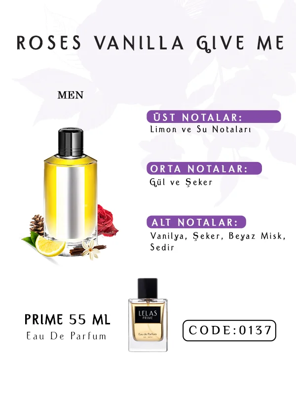 Roses Vanilla Give Me Eau de Parfum 55 ML, romantizm, sofistike zarafet ve karşı konulmaz cazibenin bir ifadesidir. Perfume File’ın Prime Koleksiyonu’nun parçası olan bu Eau de Parfum; parlak narenciye, zarif çiçekler, tatlı gurme akorlar ve sıcak odunsu-miskli tabanı harmanlar. Zarafeti ve bireyselliği benimseyenler için tasarlanmış olup, Roses Vanilla Give Me Perfume ışıldayan bir cazibenin imzasıdır.