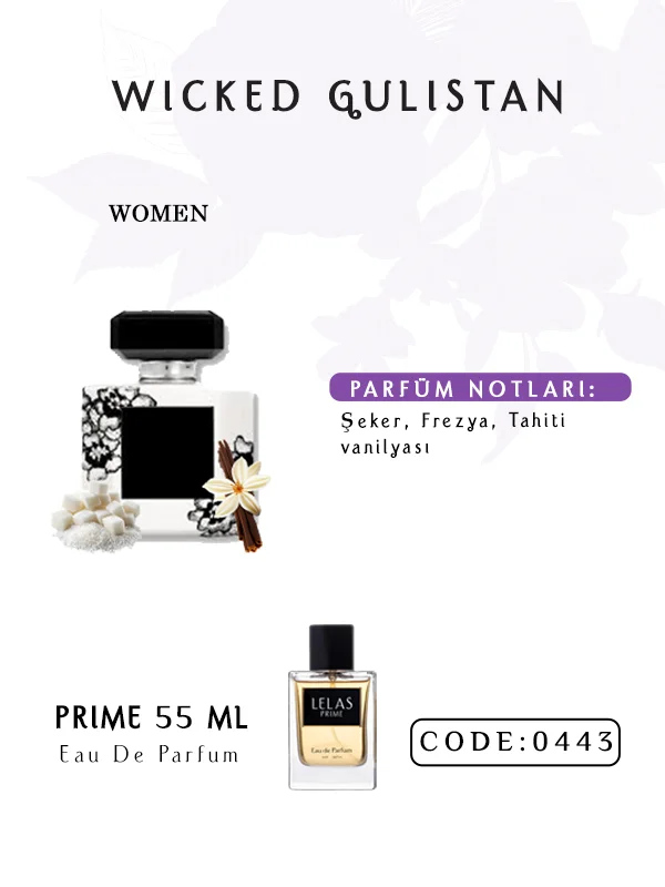 Wicked Gulistan Eau de Parfum 55 ML, zarafet, cazibe ve zamansız sofistike bir duruşu benimseyen kadınlar için tasarlanmış rafine bir parfümdür. Perfume File’ın Prime Koleksiyonu’nun parçası olan bu koku; çiçeksi parlaklık, gurme tatlılık ve kremamsı vanilya sıcaklığını harmanlayarak büyüleyici bir yolculuk sunar. Özgüven, cazibe ve karşı konulmaz bir varlık yansıtır; özel anlarda fark yaratmak için idealdir.